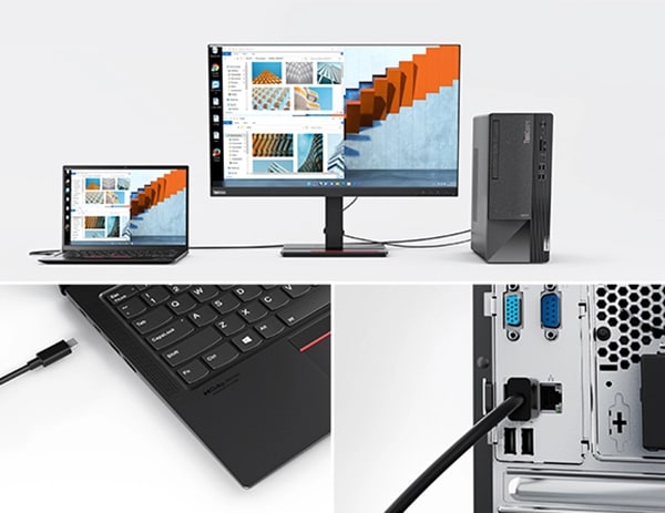 - ConnecteursFront Ports: 1x USB-C® 3.2 Gen 1 (support data transfer and 5V@3A charging) 2x USB 3.2 Gen 1 2x USB 3.2 Gen 2 1x headphone / microphone combo jack (3.5mm) 1x microphone (3.5mm) / Rear Ports: 4x USB 2.0 1x HDMI® 1.4b 1x DisplayPort™ 1.4 1x VGA 1x Ethernet (RJ-45) 1x headphone (3.5mm) 1x serial (9-pin)