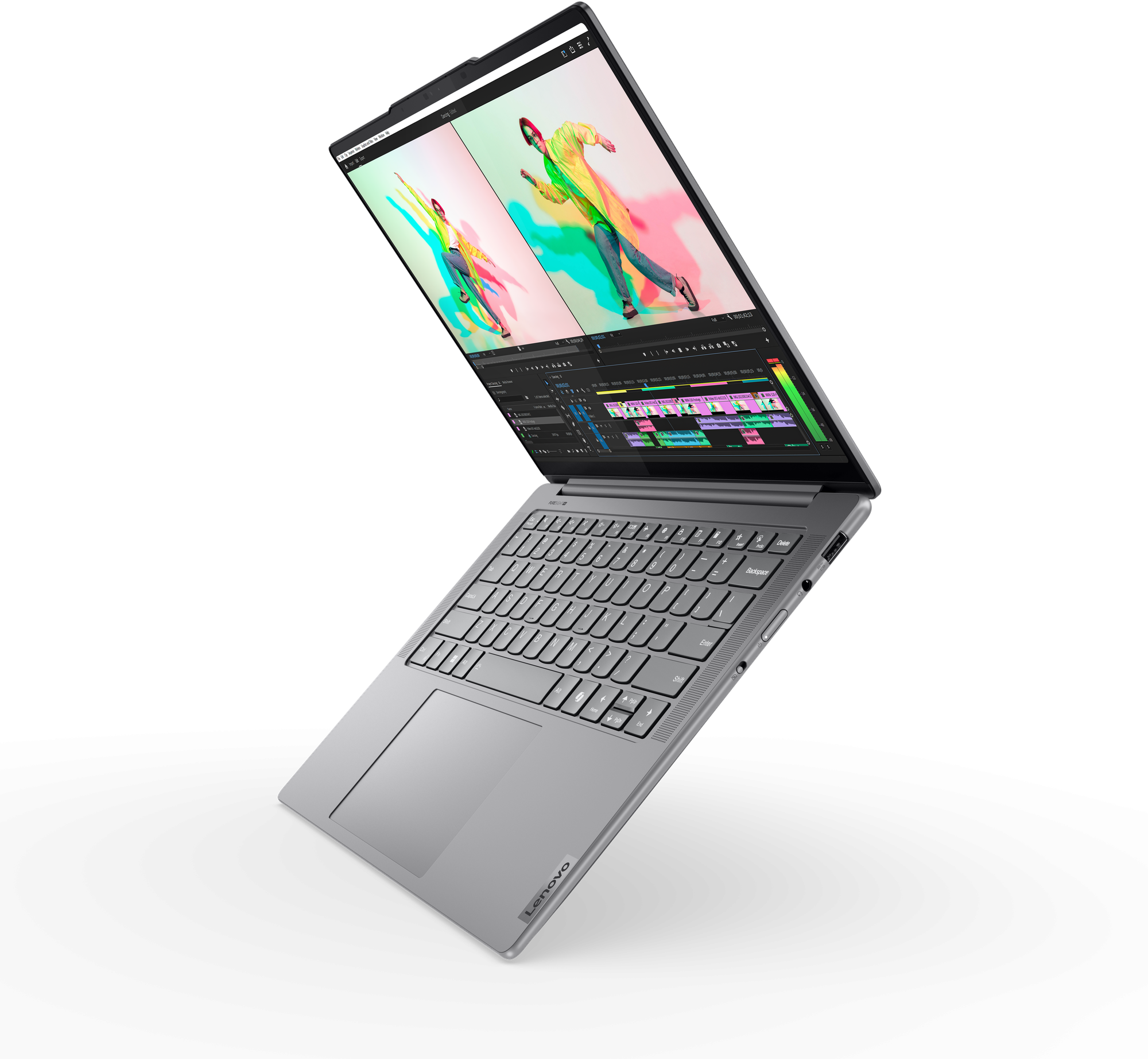 Le Yoga Pro 7i vous offre puissance, portabilité et connectivité, où et quand vous le souhaitez. Conçu pour être tenu et transporté confortablement, il est extraordinairement fin et léger, malgré ses composants internes puissants. Choisissez votre couleur parmi l’élégant Luna Grey ou le paisible Tidal Teal : à vous de vous démarquer. Il est également équipé d’un large éventail de ports, vous permettant ainsi de vous connecter à tous les périphériques dont vous avez besoin pour compléter votre écosystème de créateur Yoga.